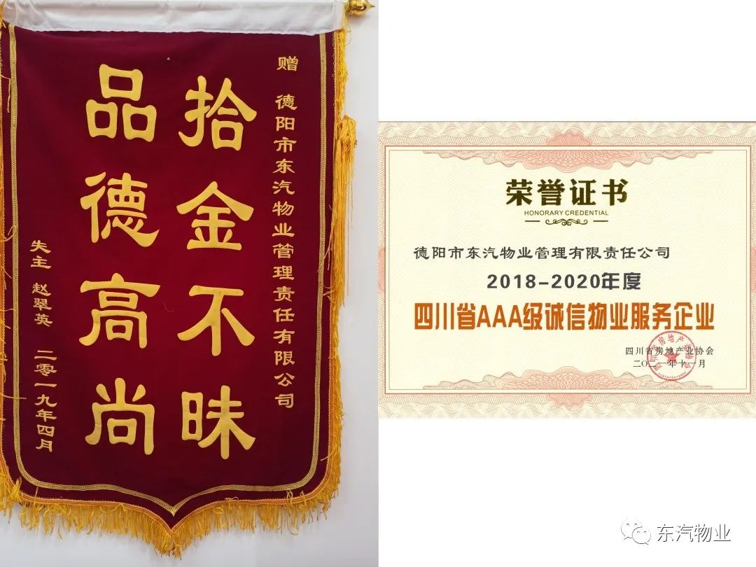 以誠信為基石的東汽物業(yè),迎來了又一榮譽時刻!